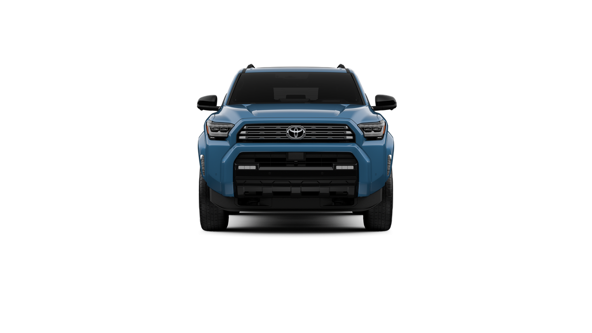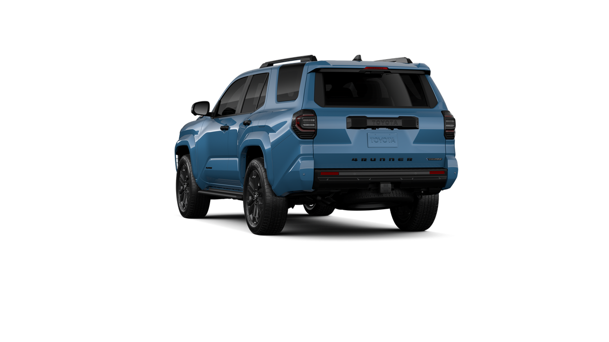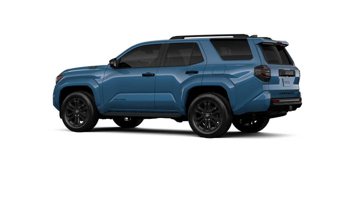 - Dark-chrome tri-bar grille; gloss-black mirror caps and door handles; color-keyed overfenders and rear spoiler; gloss-black "PLATINUM" and "4RUNNER" badges