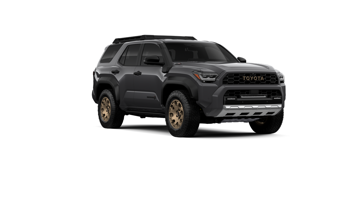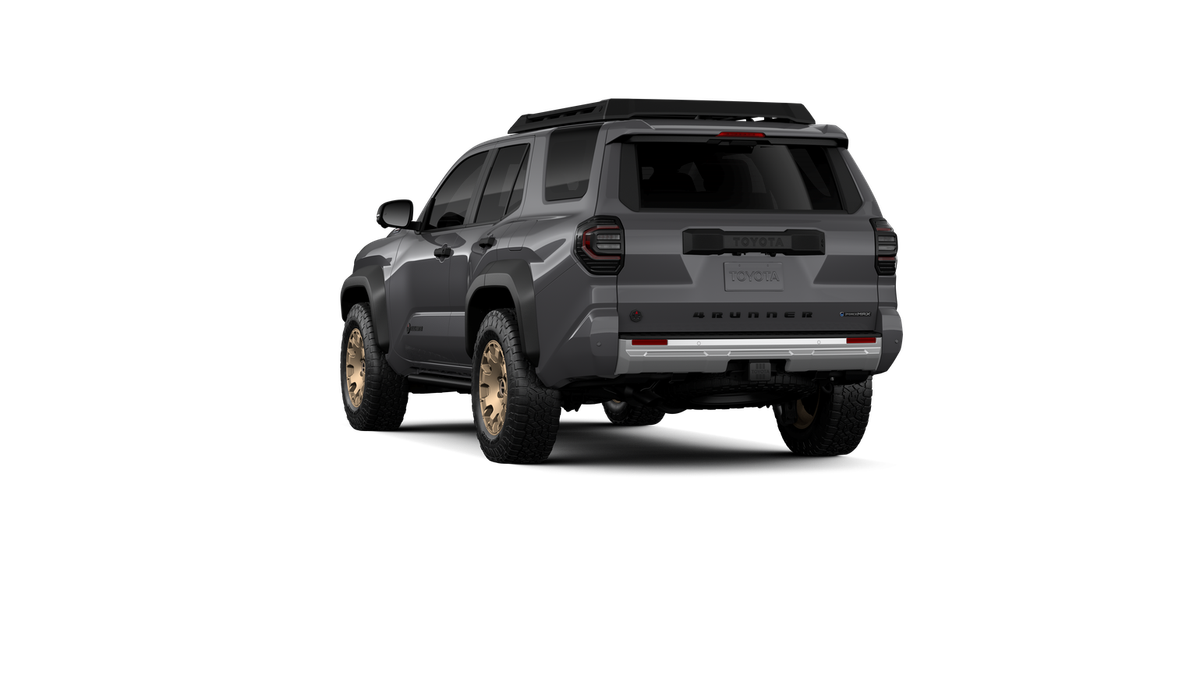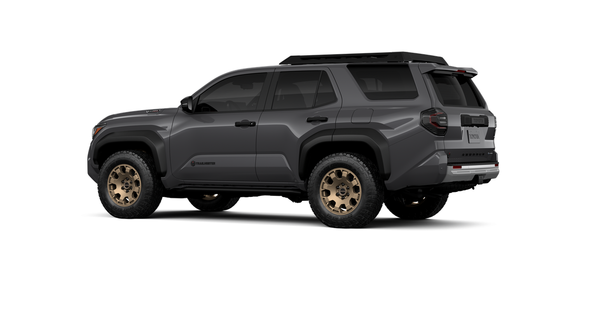 - Black "TOYOTA" heritage grille, door handles and overfenders; color-keyed mirror caps and rear spoiler; black "TRAILHUNTER" and "4RUNNER" badges