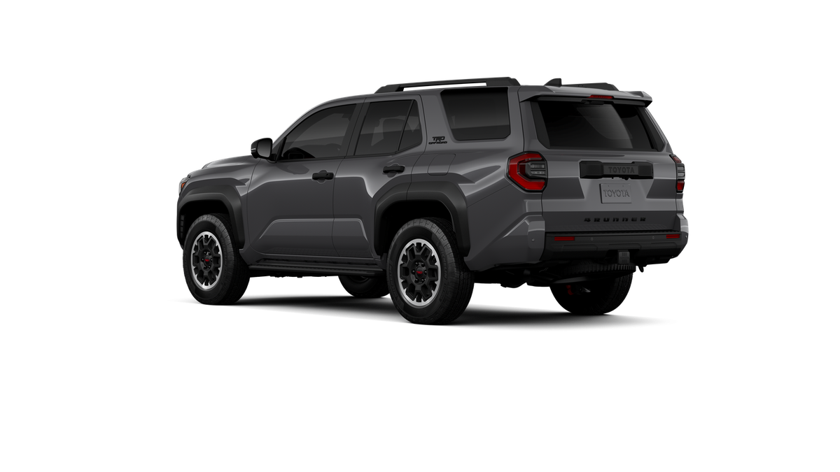 - Black honeycomb-style grille, mirror caps, door handles and overfenders; color-keyed rear spoiler; black "TRD OFF ROAD" and "4RUNNER" badges