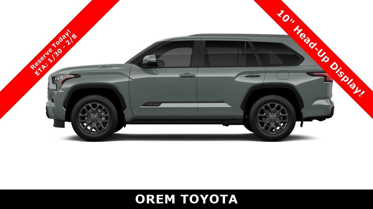 Big and bold, our 2026 Toyota Sequoia 4WD is a spirited choice for spontaneous adventure in Lunar Rock! Motivated by a Twin-TurboCharged 3.4 Liter i-FORCE MAX Hybrid V6 and an Electric Motor supplying a combined 437hp to a 10 Speed Automatic transmission with Drive Mode Select. This Four Wheel Drive SUV grabs the ground with an automatic limited-slip differential to enhance traction, and it achieves nearly 22mpg on the highway. For enhanced style, check out our Sequoia's distinctive grille, LED lighting, fog lamps, power sunroof, a flip-up rear window, black roof rails, multifunction mirrors, and 20-inch wheels.Our Sequia cabin is large and luxurious with heated/ventilated SofTex® power front seats, an easy-folding second row, a power recline third row, a heated leather steering wheel, tri-zone automatic climate control, keyless access/ignition, and 120V/400W outlets. Smart technology complements that comfort with a 14-inch touchscreen, a 12.3-inch driver display, WiFi compatibility, wireless Android Auto®/Apple CarPlay®, Bluetooth®, and eight-speaker audio.Stay safe with advanced Toyota features like blind-spot monitoring, automatic braking, adaptive cruise control, a panoramic view monitor, forward collision warning, lane-departure alert, and more. Top-shelf amenities like those are just the start for our Sequoia. Save this Page and Call for Availability. We Know You Will Enjoy Your Orem Toyota Test Drive Towards Ownership! May not represent actual vehicle. (Options, colors, trim and body style may vary) Excludes tax, tag, title and registration. Purchase offer does not include $499 Doc fee. Vehicle stock images represent trim level only.