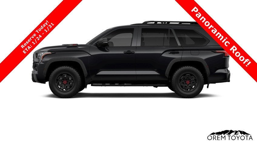 Dominate the road and the trail in our 2026 Toyota Sequoia TRD Pro 4WD in Magnetic Gray Metallic, a rugged, full-size SUV built with off-road capability, powerful performance, and premium features for bold, family-focused adventures! Motivated by a Twin-TurboCharged 3.4 Liter i-FORCE MAX Hybrid V6 and an Electric Motor delivering a combined 437hp to a 10 Speed Automatic transmission with Multi-Terrain Select. A TRD Pro off-road suspension and an electronic locking rear diff combine for incredible capability, and this Four Wheel Drive SUV returns nearly 22mpg on the highway. Our Sequoia radiates rugged style with a TRD aluminum front skid plate, premium LED lighting with an LED light bar, BBS forged aluminum wheels, and a power sunroof.Inside our TRD Pro cabin, you'll find upscale details like heated/ventilated SofTex® power front seats with exclusive inserts, second-row captain's chairs, a power recline third row, a heated leather TRD steering wheel, tri-zone automatic climate control, and a red TRD start button. Connecting is a breeze with a 14-inch touchscreen, a 12.3-inch driver display, wireless charging, wireless Android Auto®/Apple CarPlay®, WiFi compatibility, Bluetooth®, and JBL audio.You can confidently explore your world, knowing Toyota supplies adaptive cruise control, a digital rearview mirror, a panoramic view monitor, trailer backup assistance, blind-spot monitoring, automatic braking, lane-departure alert, forward collision warning, and more. Top-shelf amenities like those are just the start for our Sequoia TRD Pro. Save this Page and Call for Availability. We Know You Will Enjoy Your Test Drive Toward Ownership! May not represent actual vehicle. (Options, colors, trim and body style may vary) Excludes tax, tag, title and registration. Purchase offer does not include $499 Doc fee. Vehicle stock images represent trim level only.