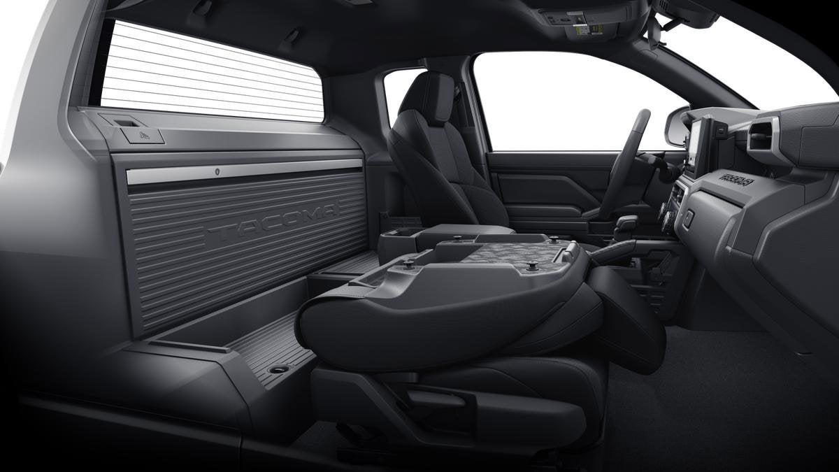 - Fold-flat passenger seat, lockable rear storage panel with integrated pegboard, and lockable deep storage compartment