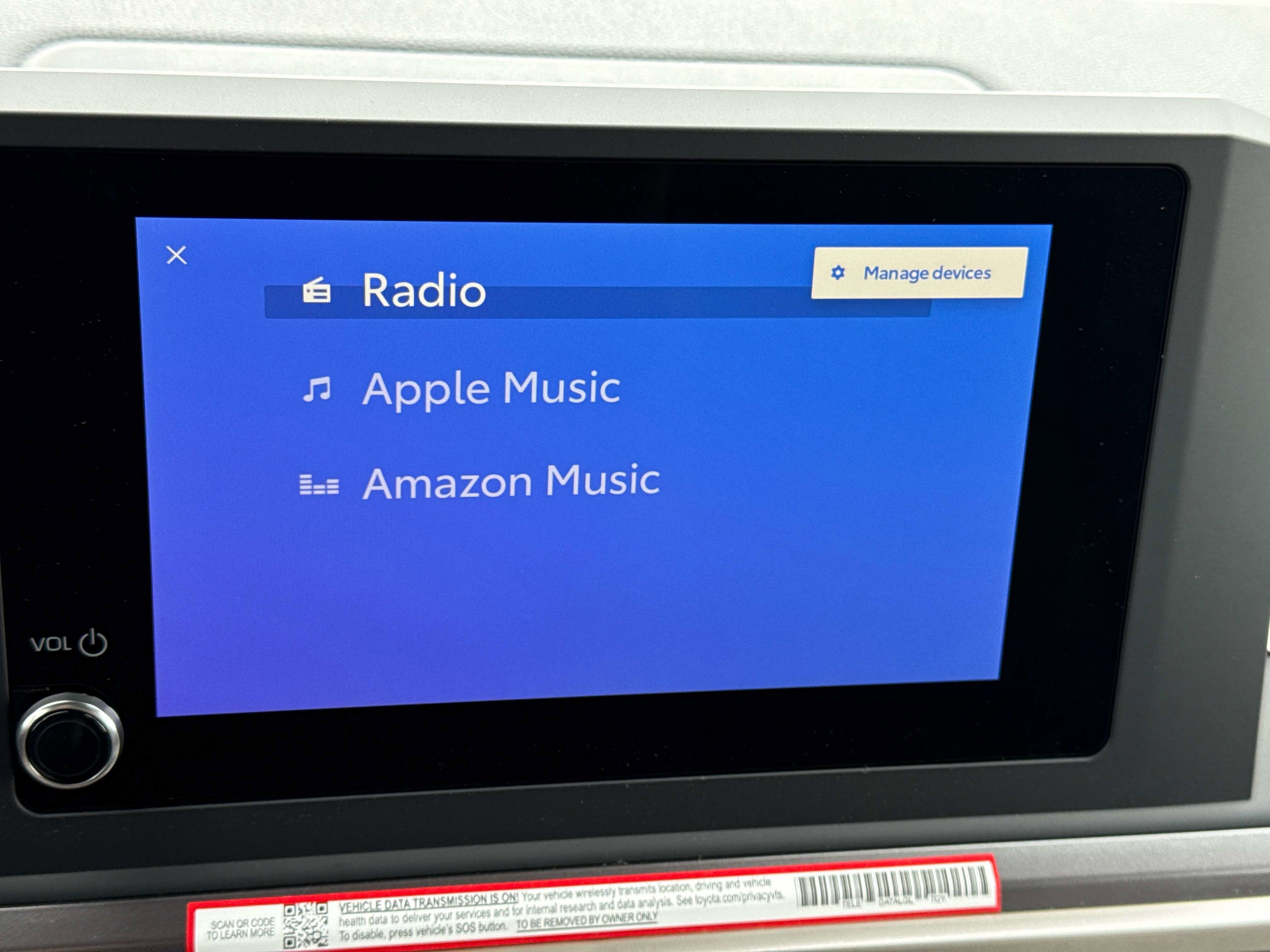 - 8-in. Toyota Audio Multimedia display with 6-speaker audio system, wireless Apple CarPlay® & Android Auto™ compatibility, SiriusXM® 3-month trial subscription. See toyota.com/connected-services for details.