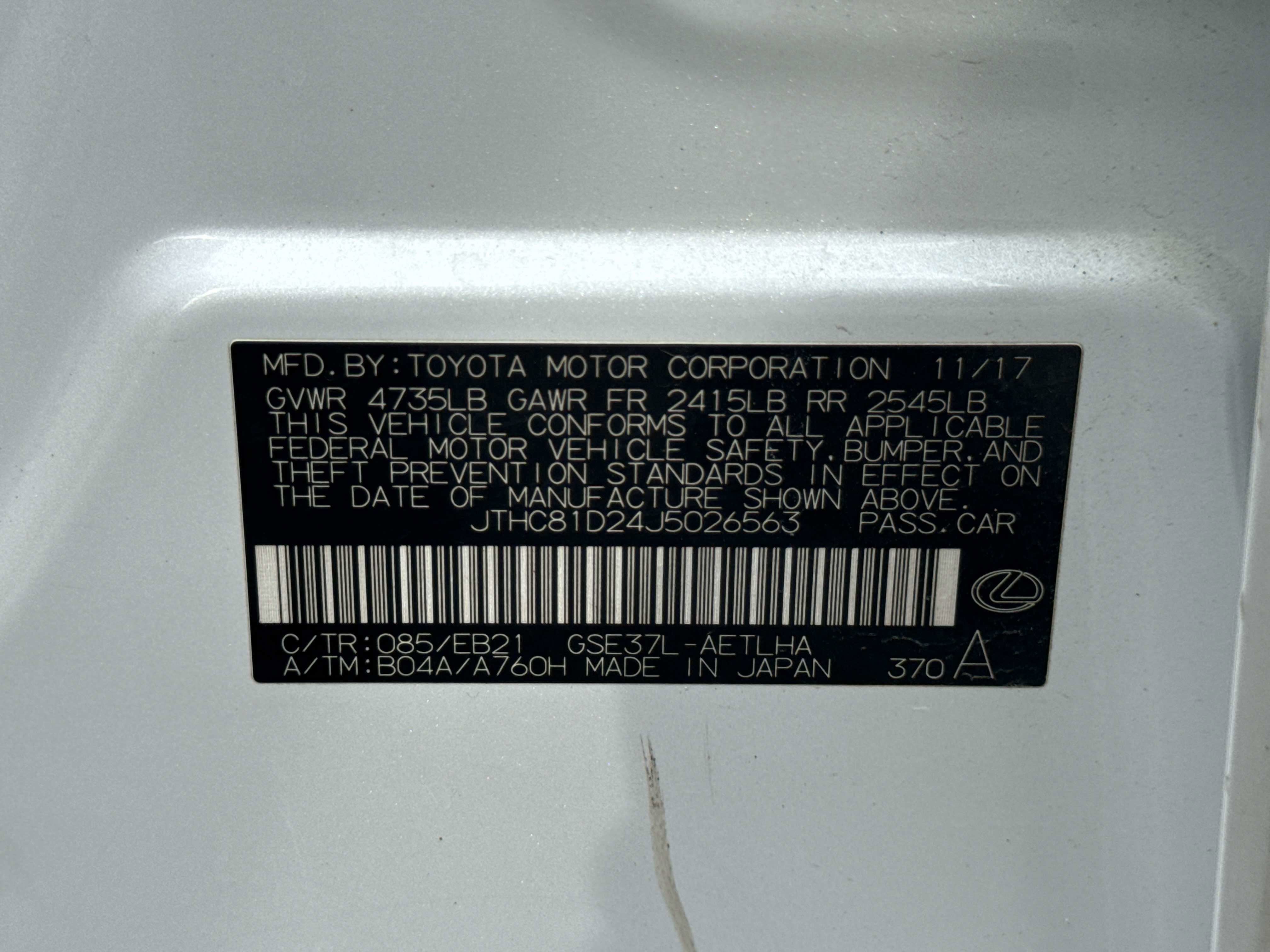 - Vehicle Name: Lexus IS
