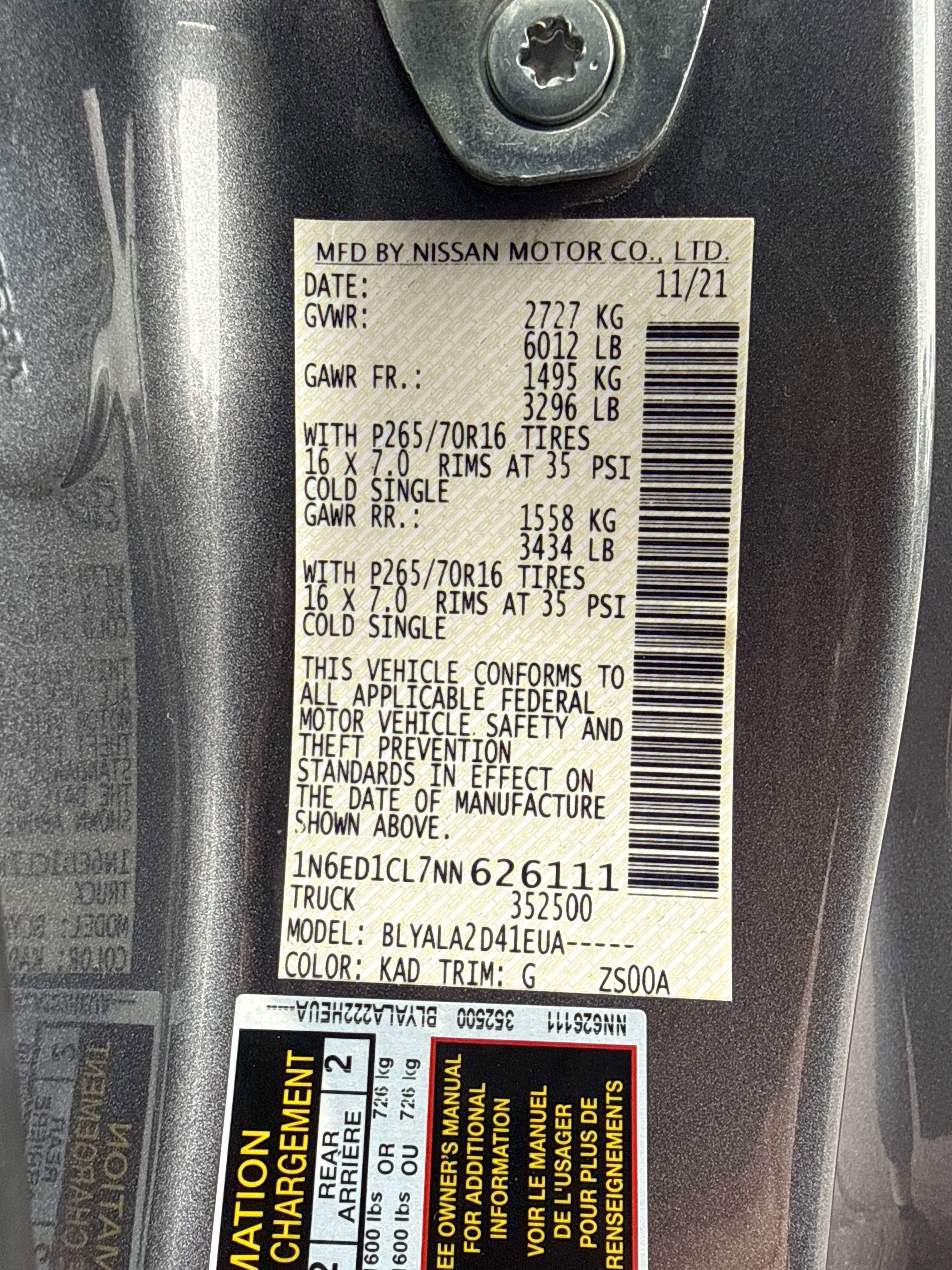 - Vehicle Name: Nissan Frontier