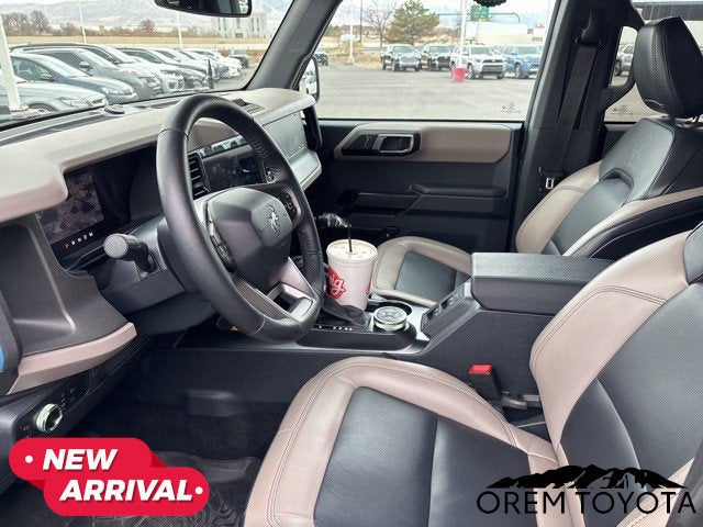 2024 Ford Bronco WildtrakGreen Metallic 2.7L EcoBoost V6Odometer is 4559 miles below market average!CARFAX One-Owner.Clean CARFAX.To see more quality vehicles like this one right here just click on www.oremtoyota.com or dial (801) 823-6020. At Orem Toyota, we pledge to consistently provide a caring, value driven, and exceptional experience for all of our guests. We love being a family owned business and hope to welcome you to be part of our family. This Ford Bronco is equipped with the following features: Equipment Group 354A High/Lux Package (360-Degree Camera, Adaptive Cruise Control, Additional Sound Deadening, Evasive Steering Assist, Front Parking Sensors, Heated Steering Wheel, Information on Demand Panel, Radio: B&O Sound System by Bang & Olufsen, Sideview Mirrors, Universal Garage Door Opener, Wireless Charging Pad, and 10 Speakers w/Subwoofer), Navigation system: Connected Navigation, 4-Wheel Disc Brakes, 4.7 Axle Ratio, 7 Speakers, ABS brakes, Air Conditioning, Alloy wheels, AM/FM radio: SiriusXM with 360L, AM/FM Stereo, Auto High-beam Headlights, Auto-dimming Rear-View mirror, Automatic temperature control, Brake assist, Carbonized Gray Molded-In-Color Hard Top, Compass, Connected Navigation, Delay-off headlights, Driver door bin, Driver vanity mirror, Dual front impact airbags, Dual front side impact airbags, Electronic Stability Control, Emergency communication system: 911 Assist, Exterior Parking Camera Rear, Front anti-roll bar, Front Bucket Seats, Front Center Armrest, Front dual zone A/C, Front fog lights, Front License Plate Bracket, Front reading lights, Front Row Top Panels Storage Bag, Front wheel independent suspension, Fully automatic headlights, Hard Top Sound Deadening Headliner, Heated door mirrors, Heated front seats, Heated Leather-Trimmed/Vinyl Bucket Seats, Illuminated entry, Integrated roll-over protection, Leather Shift Knob, Low tire pressure warning, Occupant sensing airbag, Outside temperature display, Overhead airbag, Overhead console, Panic alarm, Passenger door bin, Passenger vanity mirror, Powder Coated Tube Step, Power door mirrors, Power steering, Power windows, Radio data system, Rear-Window Defroster & Washer, Remote keyless entry, Security system, SiriusXM Radio w/360L, Speed control, Split folding rear seat, Steering wheel mounted audio controls, SYNC 4, Tachometer, Telescoping steering wheel, Tilt steering wheel, Traction control, Trip computer, Variably intermittent wipers, Voltmeter, and Wheels: 17 Black High Gloss-Painted AluminuM.360-Degree Camera, Adaptive Cruise Control, Additional Sound Deadening, Equipment Group 354A High/Lux Package, Evasive Steering Assist, Front Parking Sensors, Heated Steering Wheel, Information on Demand Panel, Navigation system: Connected Navigation, Radio: B&O Sound System by Bang & Olufsen, Sideview Mirrors, Universal Garage Door Opener, Wireless Charging Pad.