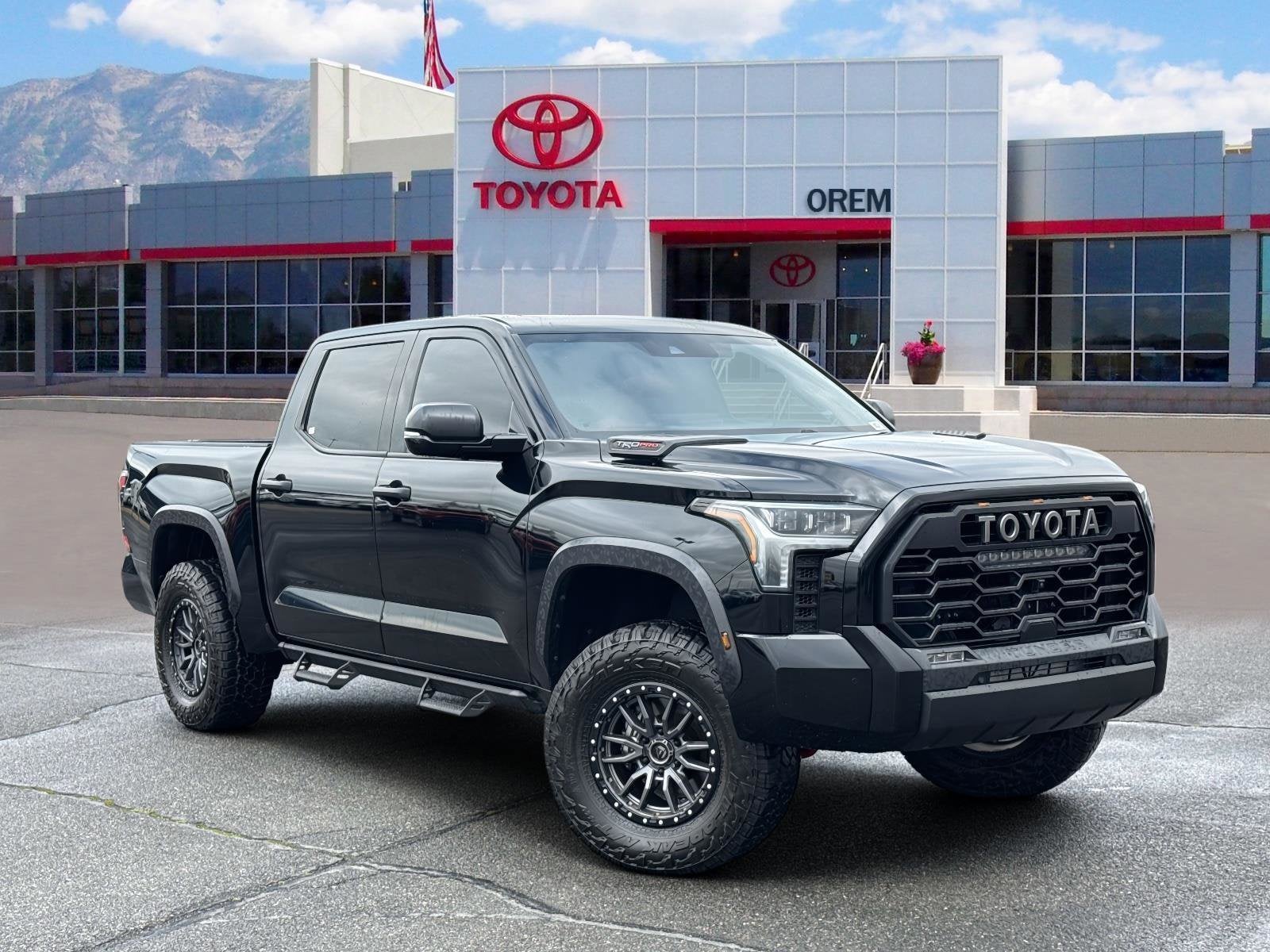 2024 Toyota Tundra Hybrid TRD ProMidnight Black Metallic 3.4L V6CARFAX One-Owner.To see more quality vehicles like this one right here just click on www.oremtoyota.com or dial (801) 823-6020. At Orem Toyota, we pledge to consistently provide a caring, value driven, and exceptional experience for all of our guests. We love being a family owned business and hope to welcome you to be part of our family. This Toyota Tundra Hybrid is equipped with the following features: TRD Pro Package, 3.4L V6, Navigation System, 12 Speakers, 3.31 Axle Ratio, 4-Wheel Disc Brakes, ABS brakes, Air Conditioning, Alloy wheels, AM/FM radio: SiriusXM, Apple CarPlay/Android Auto, Auto High-beam Headlights, Auto-dimming door mirrors, Auto-dimming Rear-View mirror, Automatic temperature control, Brake assist, Bumpers: body-color, Delay-off headlights, Driver door bin, Driver vanity mirror, Dual front impact airbags, Dual front side impact airbags, Electronic Stability Control, Emergency communication system: Safety Connect (10-year trial), Exterior Parking Camera Rear, Front anti-roll bar, Front Bucket Seats, Front Center Armrest, Front dual zone A/C, Front fog lights, Front reading lights, Front wheel independent suspension, Fully automatic headlights, Garage door transmitter: HomeLink, Heated & Ventilated Front Bucket Seats, Heated door mirrors, Heated front seats, Heated steering wheel, Illuminated entry, Knee airbag, Leather Shift Knob, Low tire pressure warning, Memory seat, Occupant sensing airbag, Outside temperature display, Overhead airbag, Overhead console, Panic alarm, Passenger door bin, Passenger vanity mirror, Power door mirrors, Power driver seat, Power moonroof, Power passenger seat, Power steering, Power windows, Radio data system, Radio: Premium Audio w/JBL, Rear reading lights, Rear seat center armrest, Rear step bumper, Rear window defroster, Remote keyless entry, Security system, SofTex Seat Trim, Speed control, Speed-sensing steering, Split folding rear seat, Sport steering wheel, Stainless Steel Door Edge Guards (TMS), Steering wheel mounted audio controls, Tachometer, Telescoping steering wheel, Tilt steering wheel, Traction control, Trip computer, Turn signal indicator mirrors, Variably intermittent wipers, Ventilated front seats, Voltmeter, and Wheels: 18 x 8 Black BBS Forged AluminuM.3.4L V6, Navigation System, TRD Pro Package.